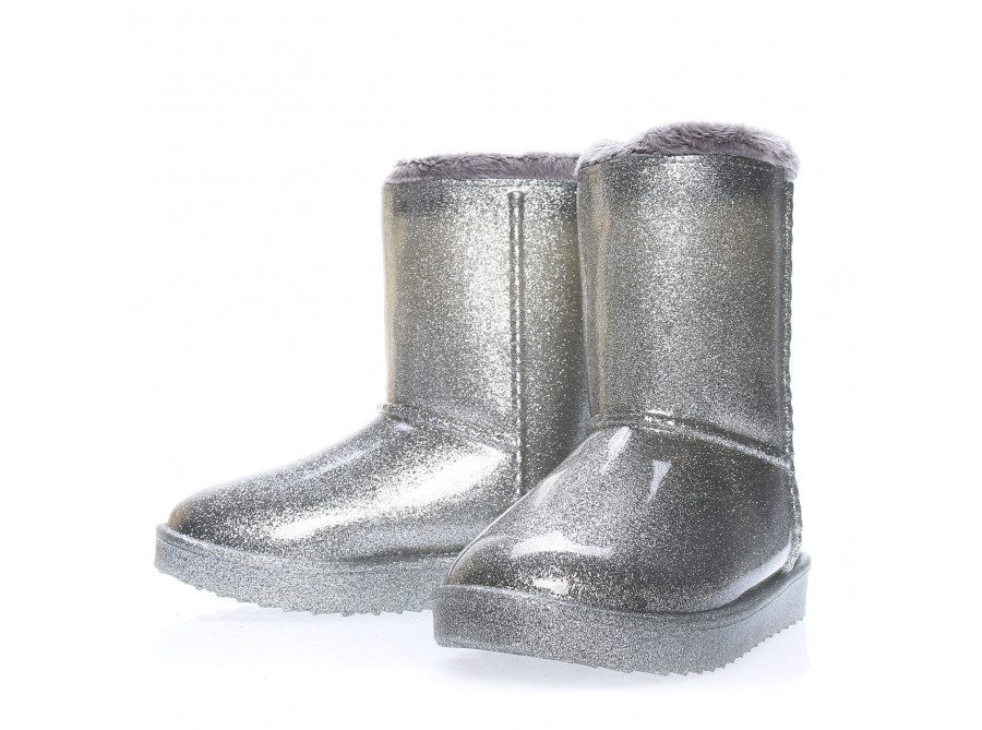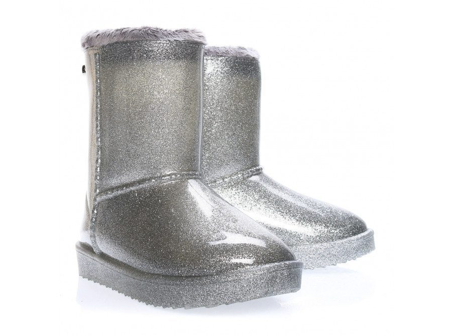 Ghete copii confectionate din cauciuc moale cu particule stralucitoare si interior captusit in totalitate cu blana ecologica.