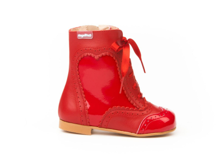O linie clasică. Confortabil si moale, un pantof tip botine din piele lacuita cu sistem de inchidere cu snur din panglica satinata. Partea interioară este realizată cu căptușeală din piele naturală, protector pentru degetele de la picioare și călcâiele, branț cu punte anatomică și talpă antiderapantă. Încălțăminte proiectată și fabricată în Spania.